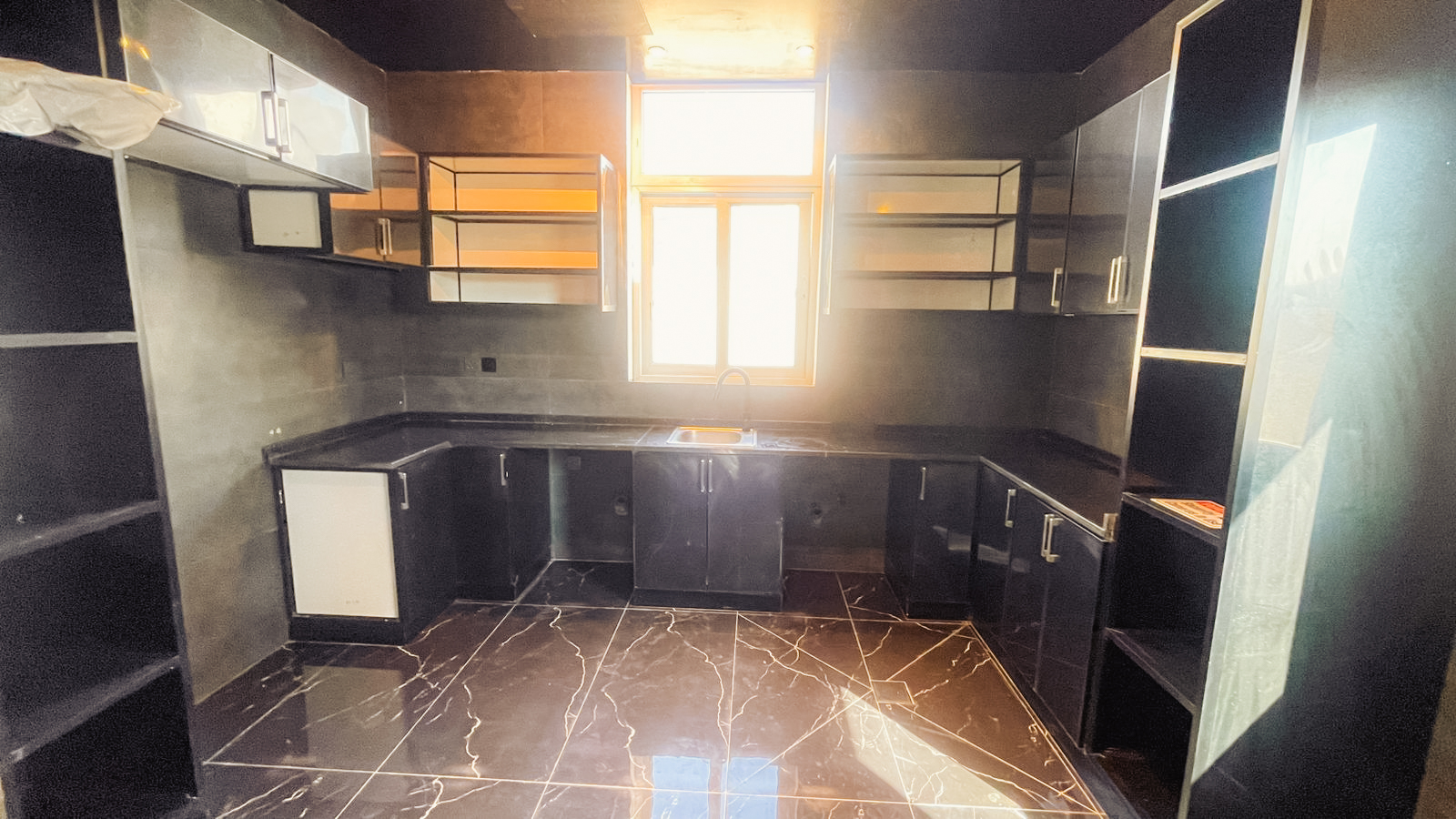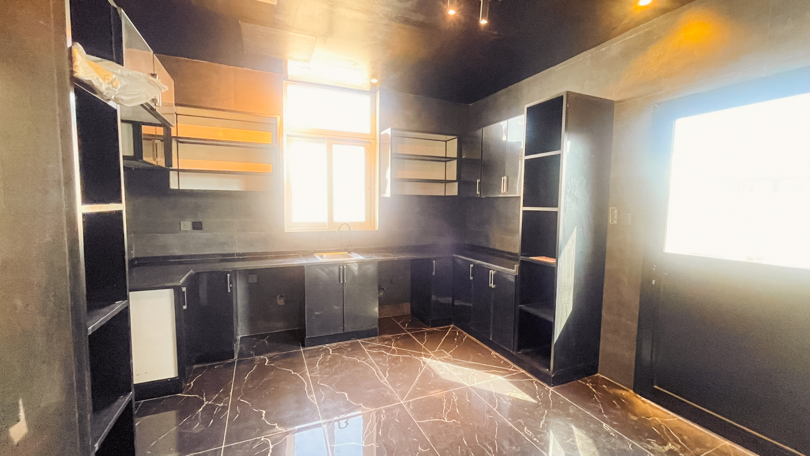 Fully Fitted Kitchen with Ample Storage Cabinets.